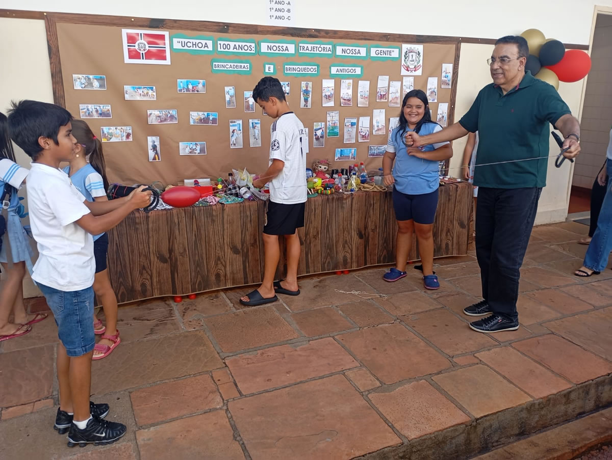 O prefeito Claudio visitou todas as escolas e, em uma delas, participou de um momento de descontração, revivendo uma brincadeira antiga, tradicional da época em que não existiam celulares. “Esse contato direto com as riquezas que produzimos no decorrer da história é fundamental para que os jovens conheçam as raízes de onde tudo começou”, afirmou o prefeito.