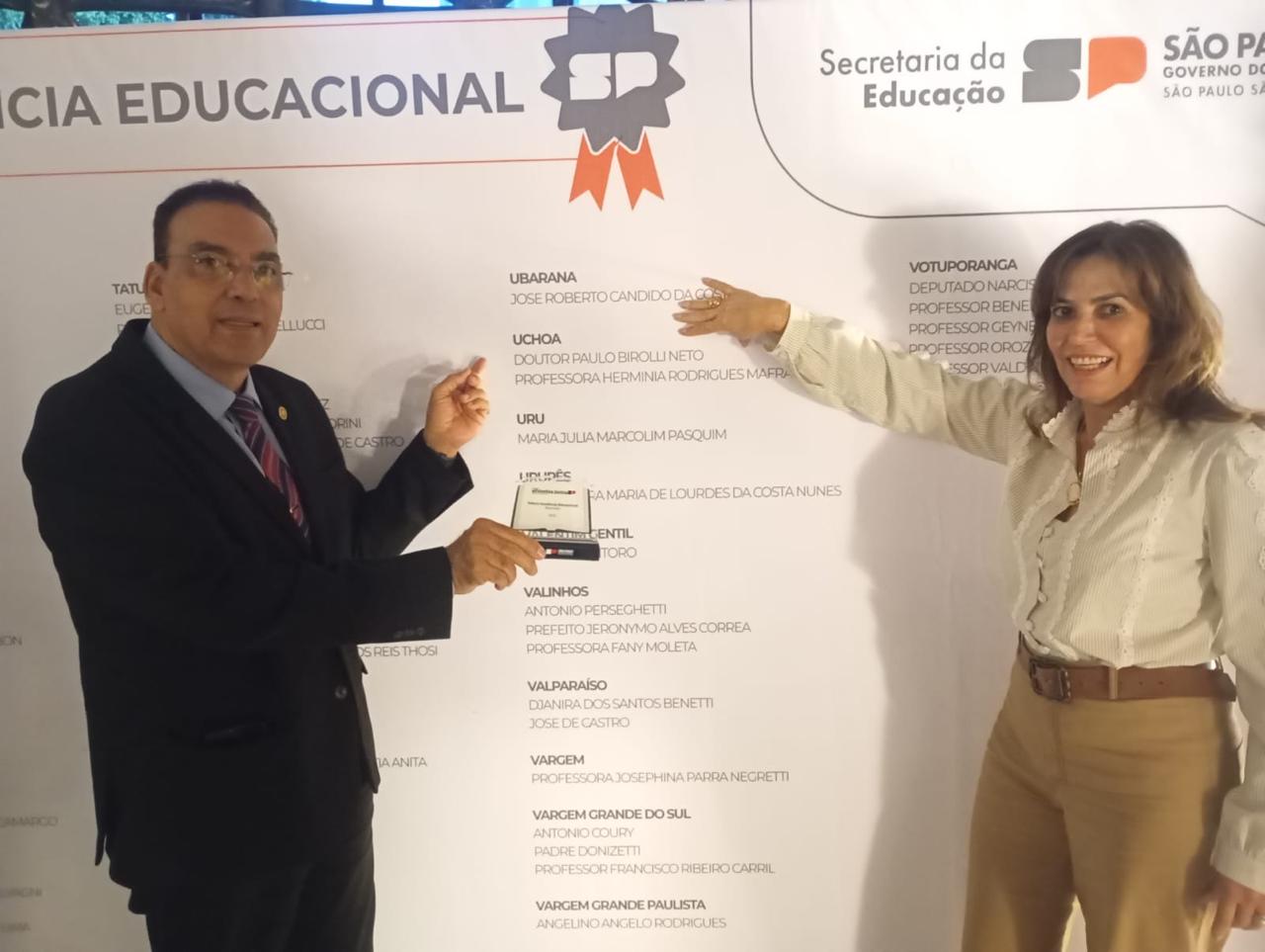 O prêmio excelência educacional é um reconhecimento e incentivo aos municípios e escolas que se destacam na alfabetização. A cerimônia de premiação aconteceu neste dia 17, no Memorial da América Latina, em São Paulo.