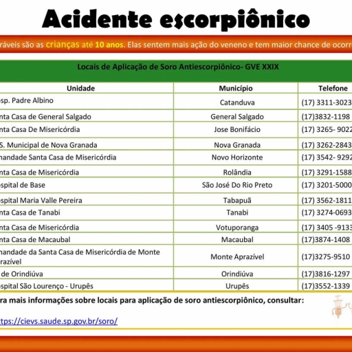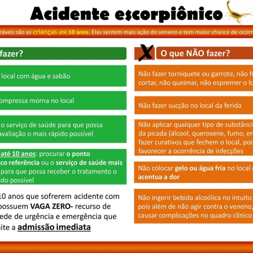Acompanhe na tabela abaixo sobre o que deve ou não fazer em casos de acidente escorpiônico.